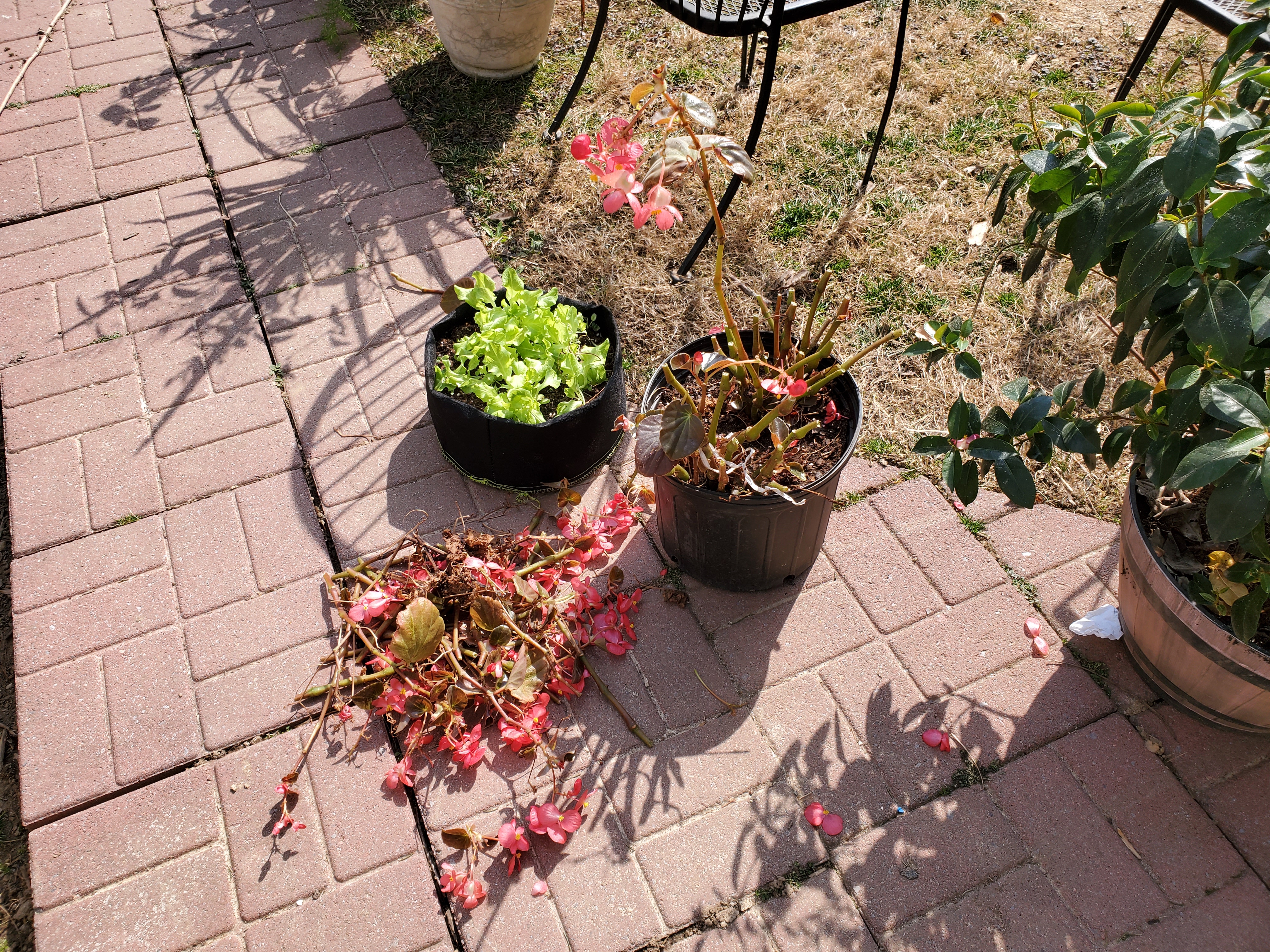 겨울을 넘긴 키쟁이 베고니아도 싹둑 잘라냈다. 잘라낸 가지는 물에 담궈 놨다. 뿌리가 날까? 이래도 되는건지... ^^ 이렇게 해봤다.